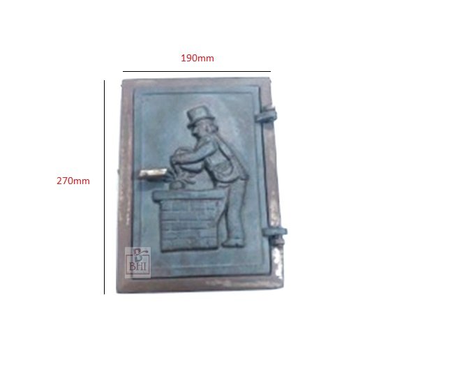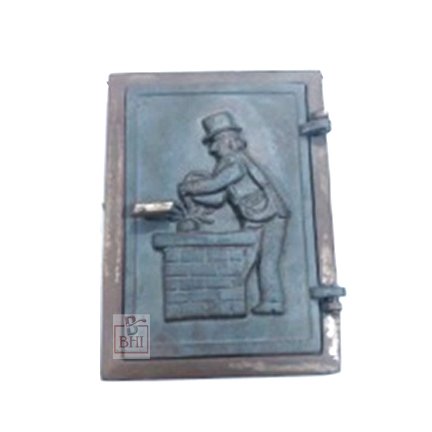 A particularly beautifully crafted cleaning flap for the chimney. The chimney sweep motif on the front is based on the historical original. With this iron flap door you can add a decorative and practical ornament to your fireplace.