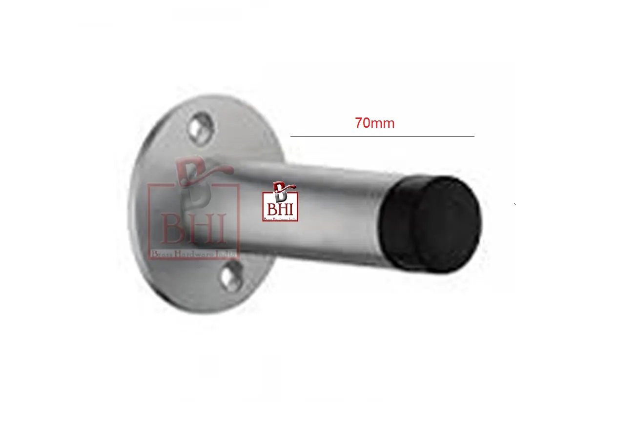 Aluminum Rubber Tipped Doorstop Cylinder with Rose – Wall Mounted – 70mm – Satin Anodized Protective Door Buffer – Wall Protection Bumper -Internal Door Accessories.