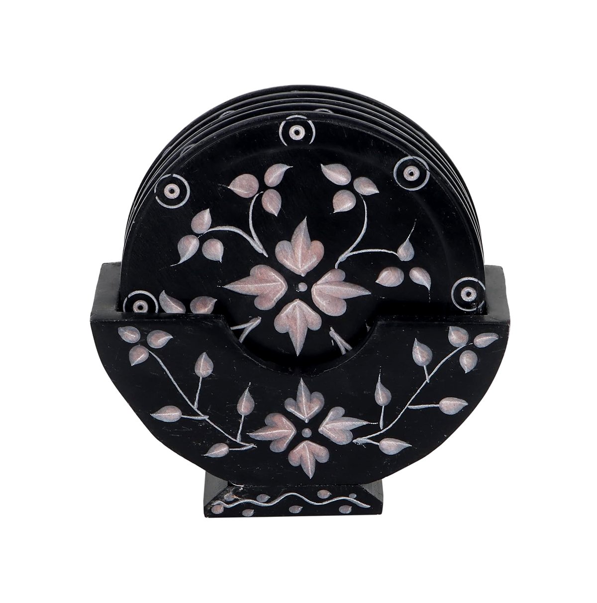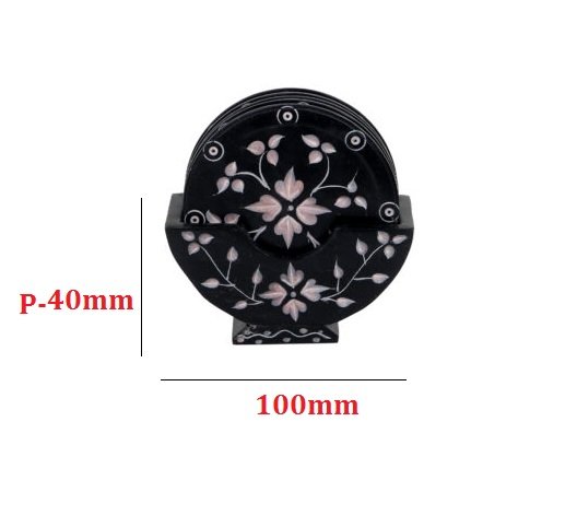 India Designer Marble Soapstone Coaster with Holder Set of 6-Piece,