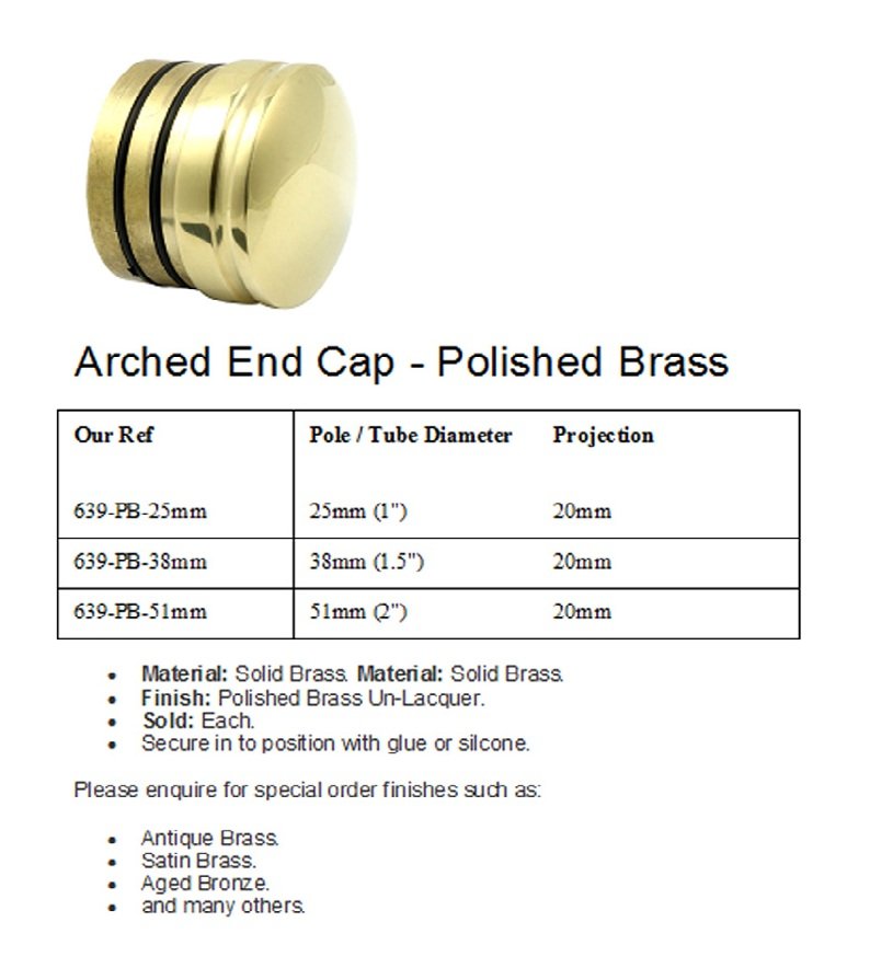 Polish brass flush fitting Arched End Caps.