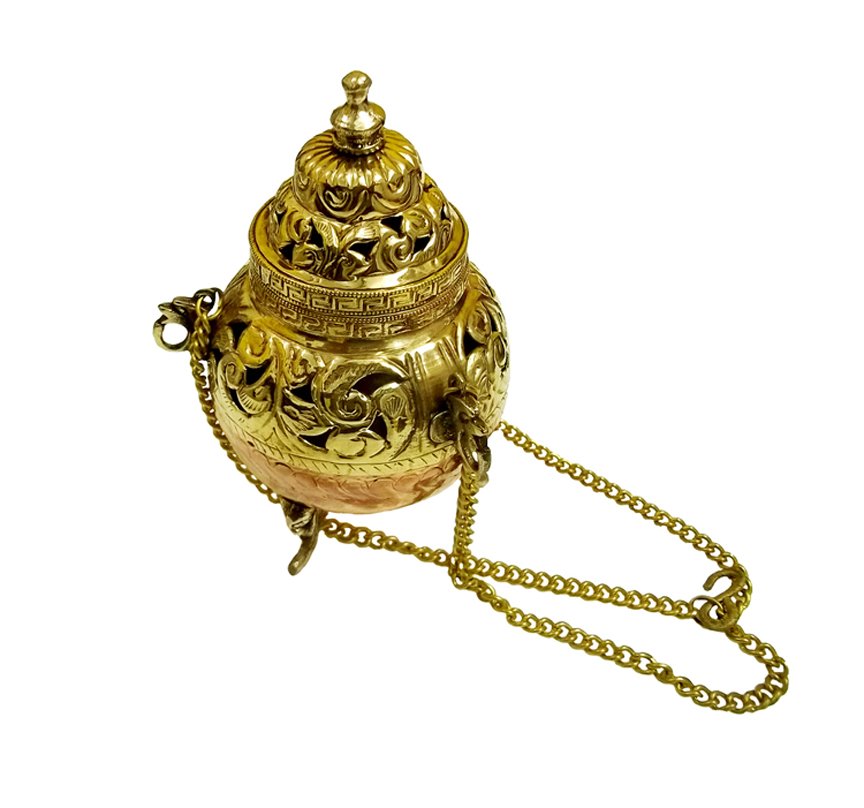 Brass Hanging Incense Burner with Intricate Carvings