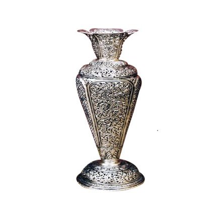 Brass Metal Antique Silver Finish Stylish Flower Vase
