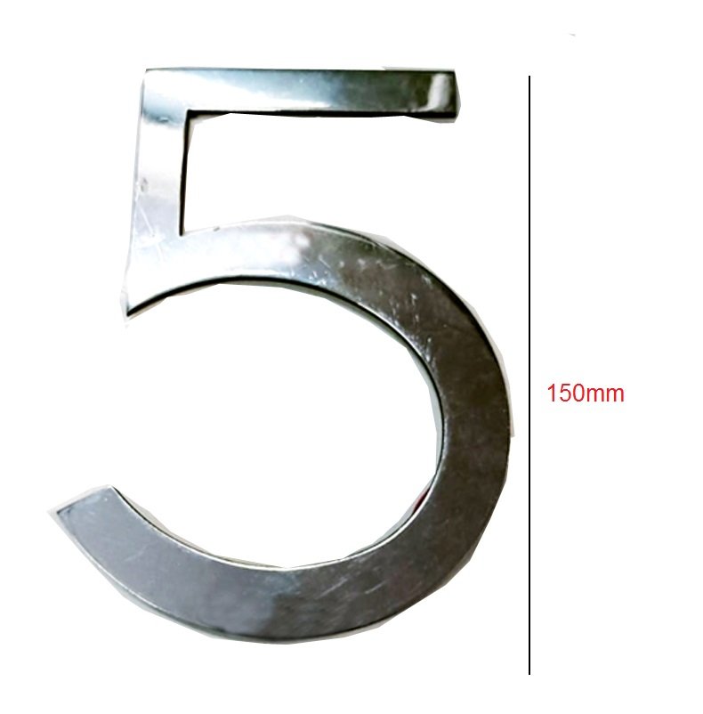 Brass “NO.5” Door House Numbers and Street Address Plaques Numbers for Residence and Mailbox Signs Chrome Finish
