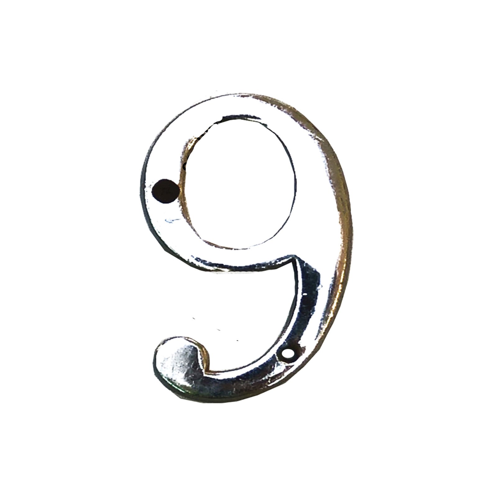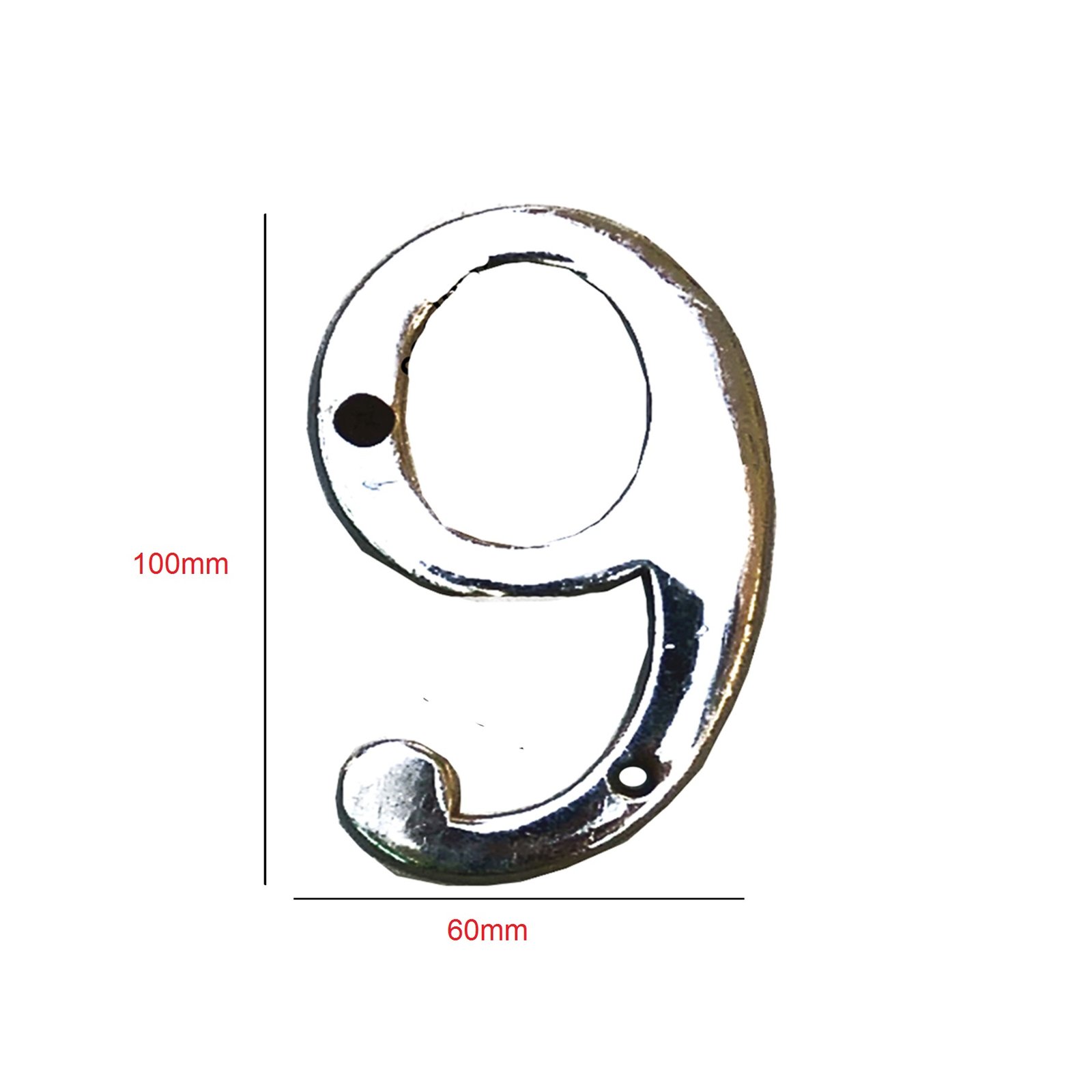 Brass “NO.9” Door House Numbers and Street Address Plaques Numbers for Residence and Mailbox Signs Chrome Finish