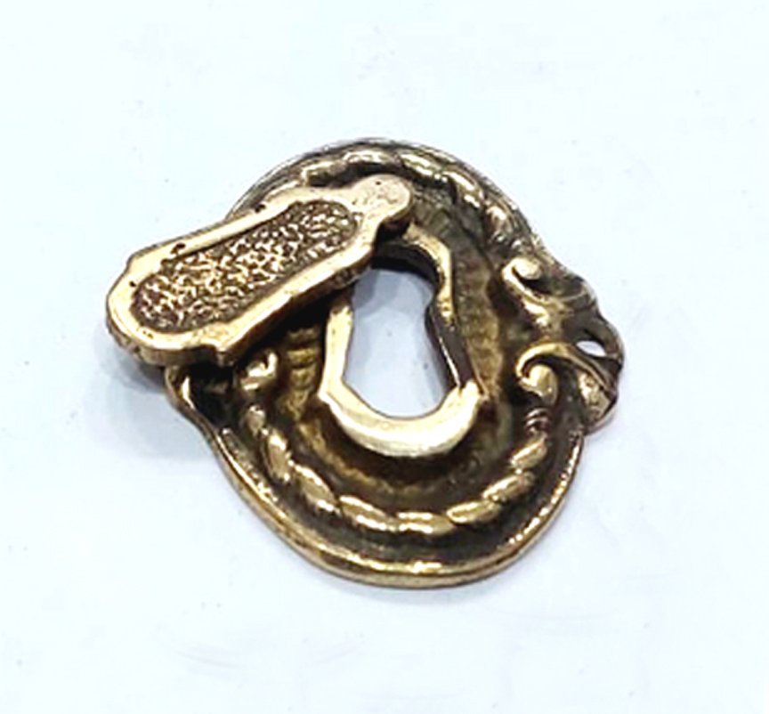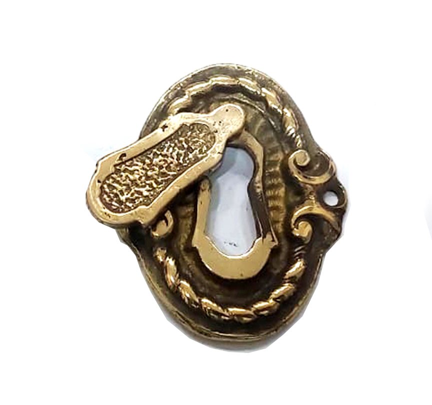 Brass Victorian Standard Profile Keyhole Closed Covered Lock Swing Cover Plate Escutcheon Brass Antique Finish.