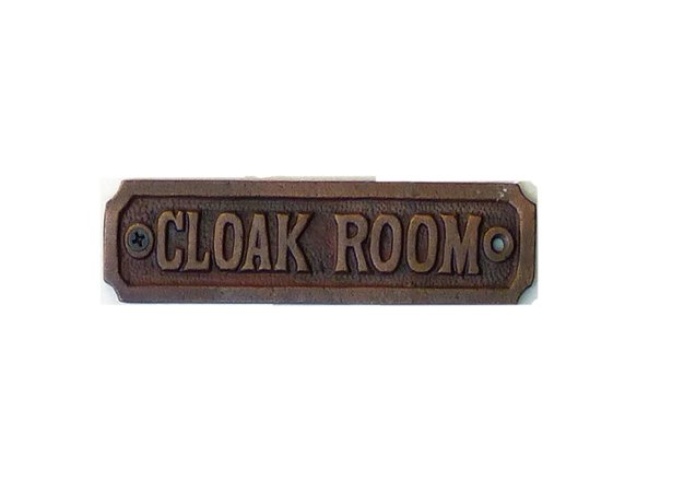 This Cast Iron “CLOAK ROOM” Sign has a Copper Antique authentic finish that will naturally age over time. The perfect addition to any home, adds the perfect finishing touch to any cloakroom, bathroom, or loo