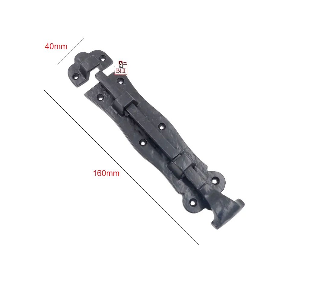 Cast Iron Door Bolt Scroll Style Black powder coated, Surface Mounted Door Bolt, Sliding Door Lock, Lock Bolts for Securing Internal Doors for Bedrooms, Bathrooms, Storage Units and Cupboards.