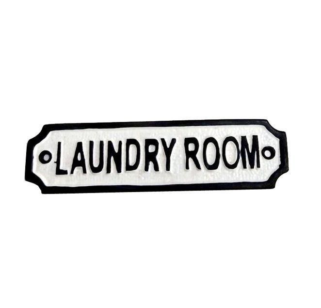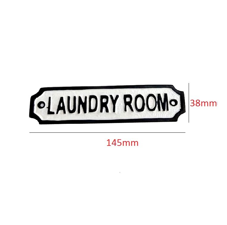 Cast Iron LAUNDRY ROOM Sign Plaque Door Wall Fence Post Cafe Shop Pub Hotel Bar Work B/White Vintage Finish