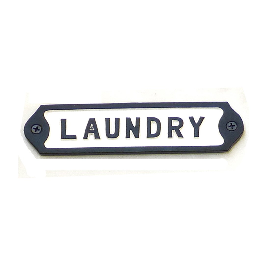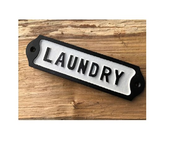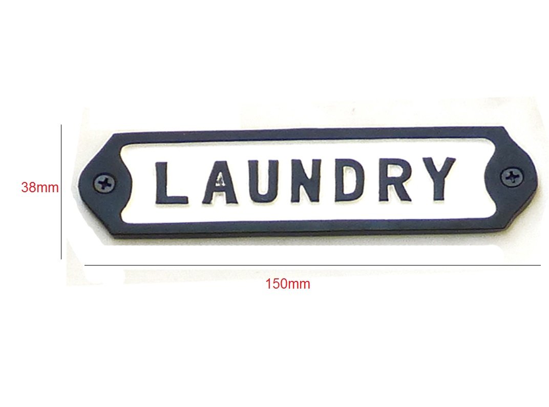 Cast Iron “LAUNDRY ” Sign Plaque Door Wall Cafe Shop Pub Hotel Bar Work B/White Vintage Finish