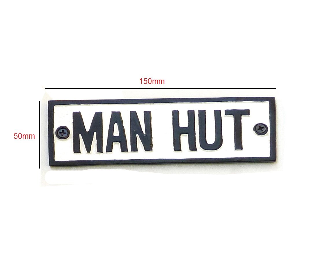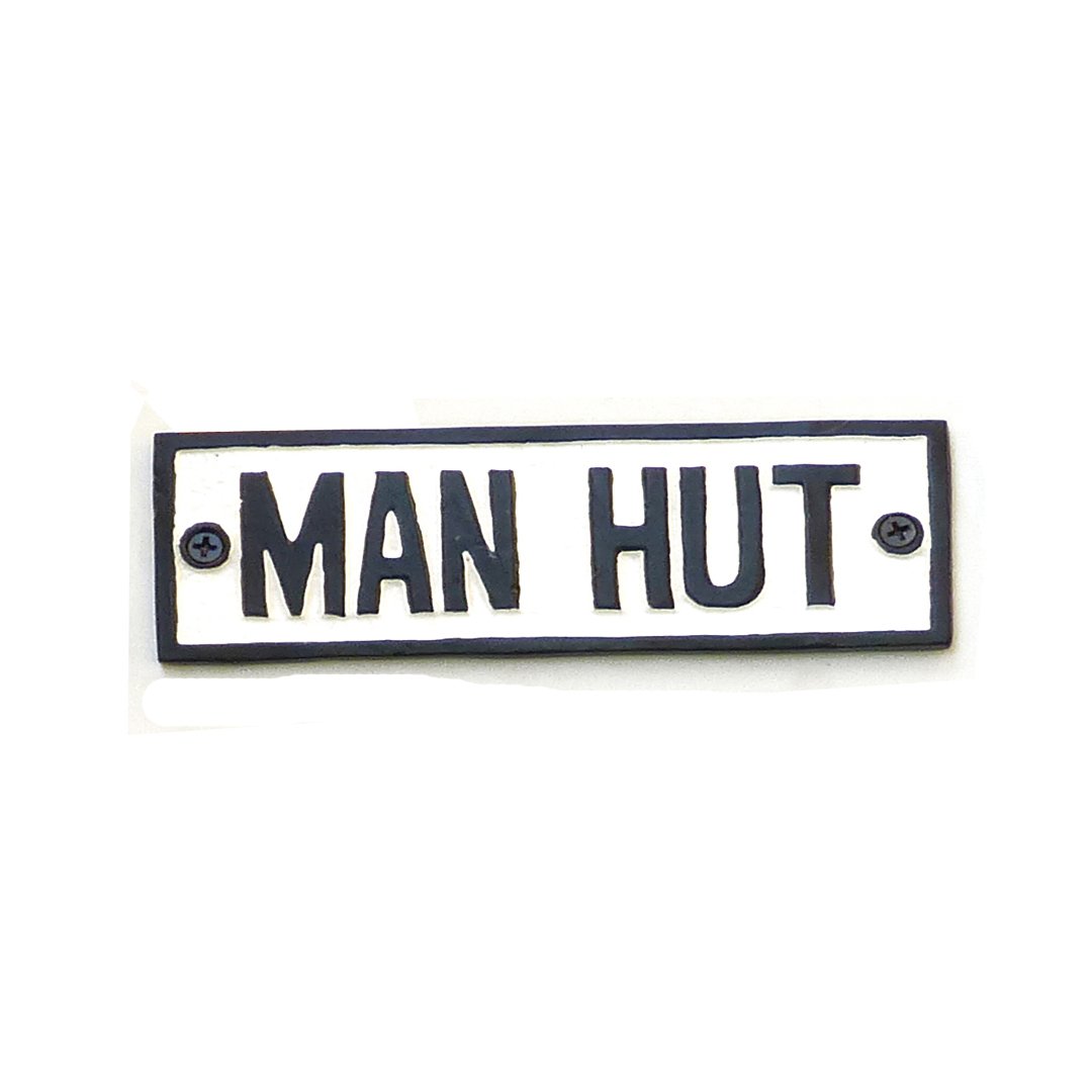 Cast Iron “MAN HUT” Sign Plaque Door Wall Fence Post Cafe Shop Pub Hotel Bar B/White Vintage Finish