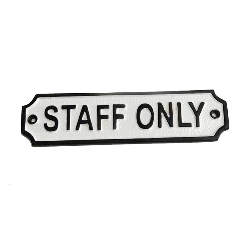 Cast Iron “STAFF ONLY” Sign Plaque Door Wall Fence Post Cafe Shop Pub Hotel Bar Work B/White Vintage Finish