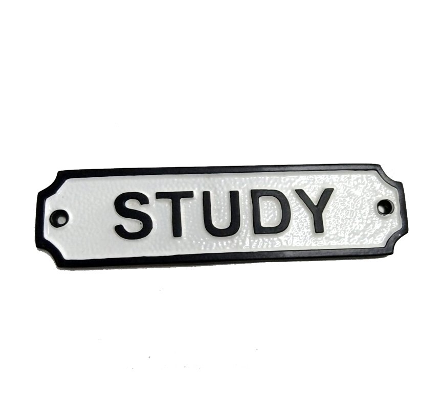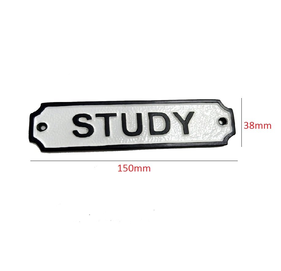Cast Iron “STUDY” Sign Plaque Door Wall Fence Post Cafe Shop Pub Hotel Bar Work B/White Vintage Finish