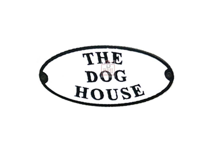 Cast Iron “THE DOG HOUSE” Oval Sign Plaque Door Wall Fence Post Cafe Shop Pub Hotel Bar Work B/White Vintage Finish