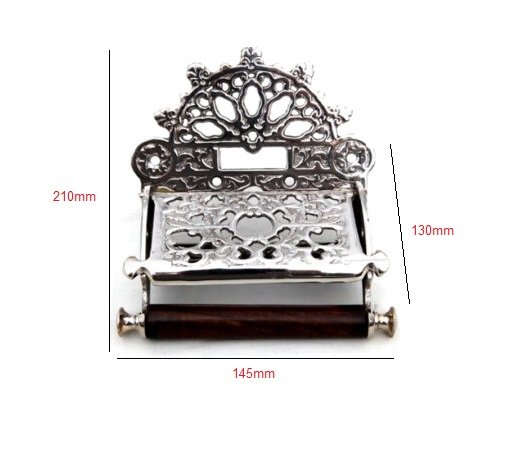 This Toilet tissue holder is a quality product, crafted with excellent quality Cast Iron with hardwood centre and is treated with Black Finish, giving the item a Classy Look, While protecting the item from rust.
