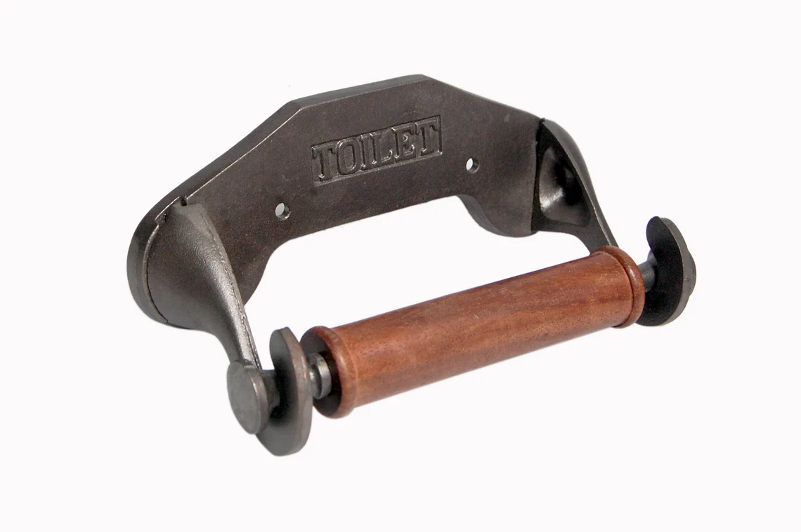 Cast Iron Toilet Roll Holder Wall Mounted Industrial Style Toilet Embossed – Cast Iron Toilet Paper Holder Wooden Loop Bathroom Accessories Natural Finish