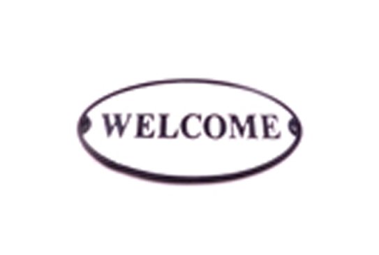 Cast Iron “WELCOME” Oval Sign Plaque Door Wall Fence Post Cafe Shop Pub Hotel Bar Work B/White Vintage Finish