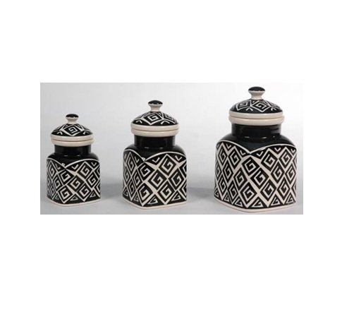 Ceramic Jar & Container for Kitchen Storage Set Multi Utility Air Tight Kitchen Organiser Items Tea Coffee Sugar Containers with Ceramic Lids (Hand-Painted) Finish