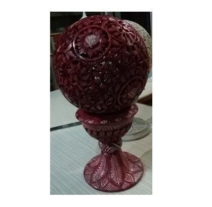 Coloured Marble Soapstone Sangemarmar Undercut Ball T-light Handicrafts Marble Decorative Soft Stone T-Light Lamp with Electric Bulb & Candle Holder Decorative Lantern for Home and Kitchen Decor