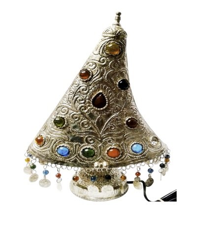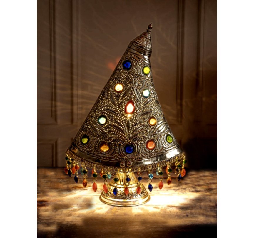 Conical Metal Table Lamp Embellished with Colorful Stones For Home with Multi Studs Antique Table Top Lamp like light adapts well to any Corridors, Cafe, Bars, Dining Room, Office Tables etc
