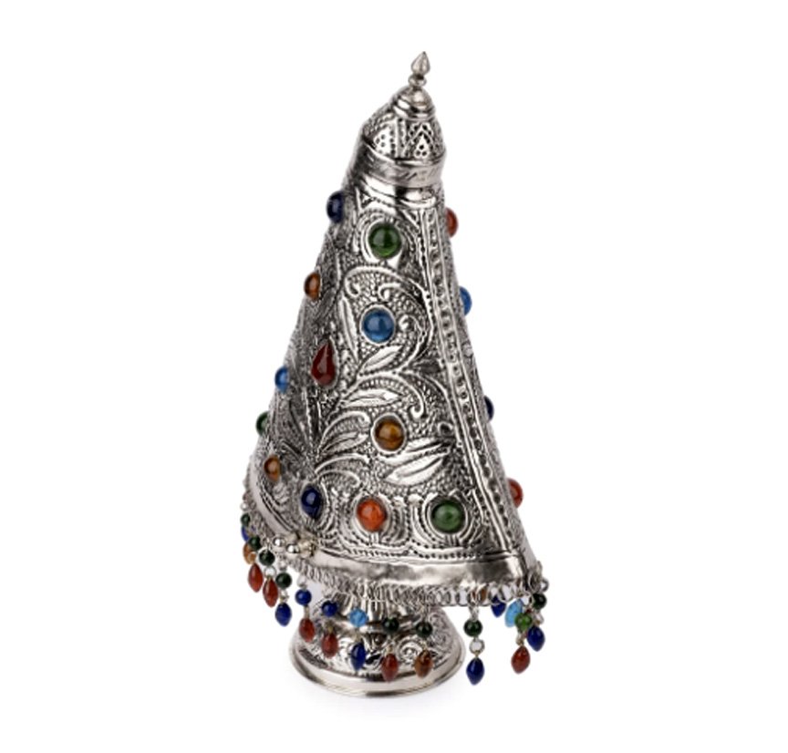 Conical Metal Table Lamp Embellished with Colorful Stones