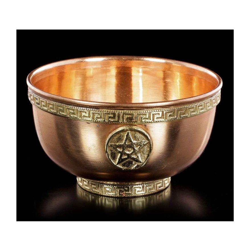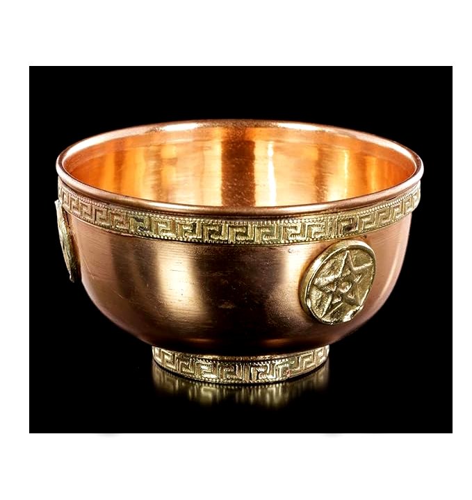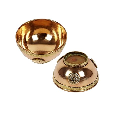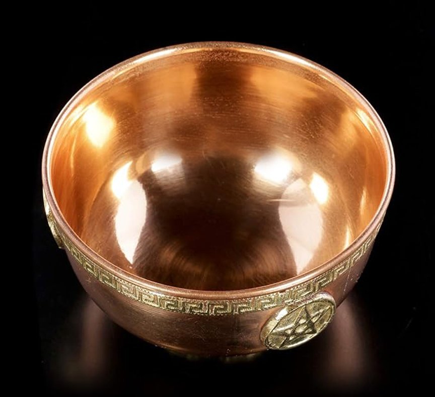This mystical copper bowl with the pentagram symbol made of brass is a must-have in any magical collection!