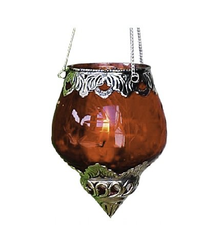 Red Glass Hanging Lantern with Pewter decorative ironwork – Patio & Garden decor