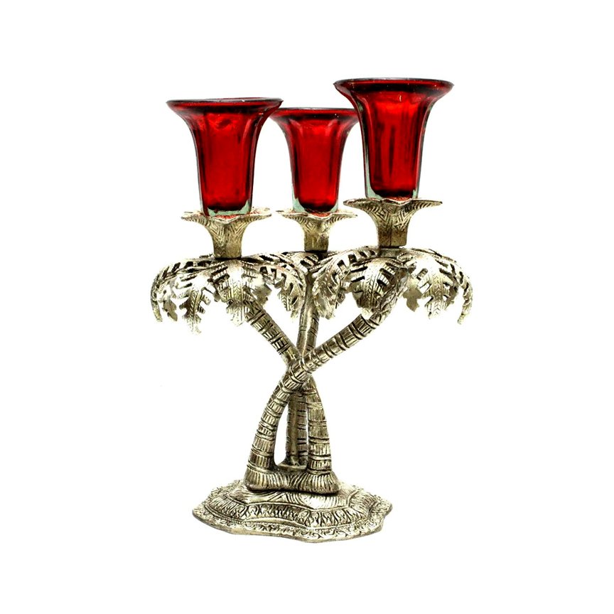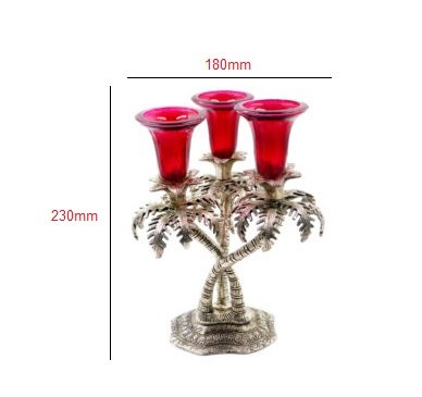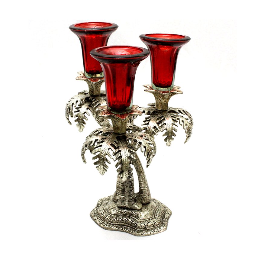 Light up like never before Enjoy the feel of Tropical beach and sand with this Palm Tree candle stand. Simple and classic this candle stand is perfect to set a mood for relaxed evening at home. Made from white metal, this piece comes with beautiful hand work on its base and with three coloured Glass Top. A perfect new addition to your home decor and a fabulous royal gifting idea to make someone feel special.
