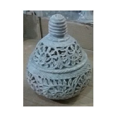 Gray Marble Soapstone T-Light Candle Holder Handi Shape.Perfect Handmade jaali Carved.Decorative for Home and Office Decor Marble Stone Sangemarmar Undercut T-light Handicrafts Marble Decorative Soft Stone T-Light Lamp with Electric Bulb & Candle Holder Decorative for Home and Kitchen Decor