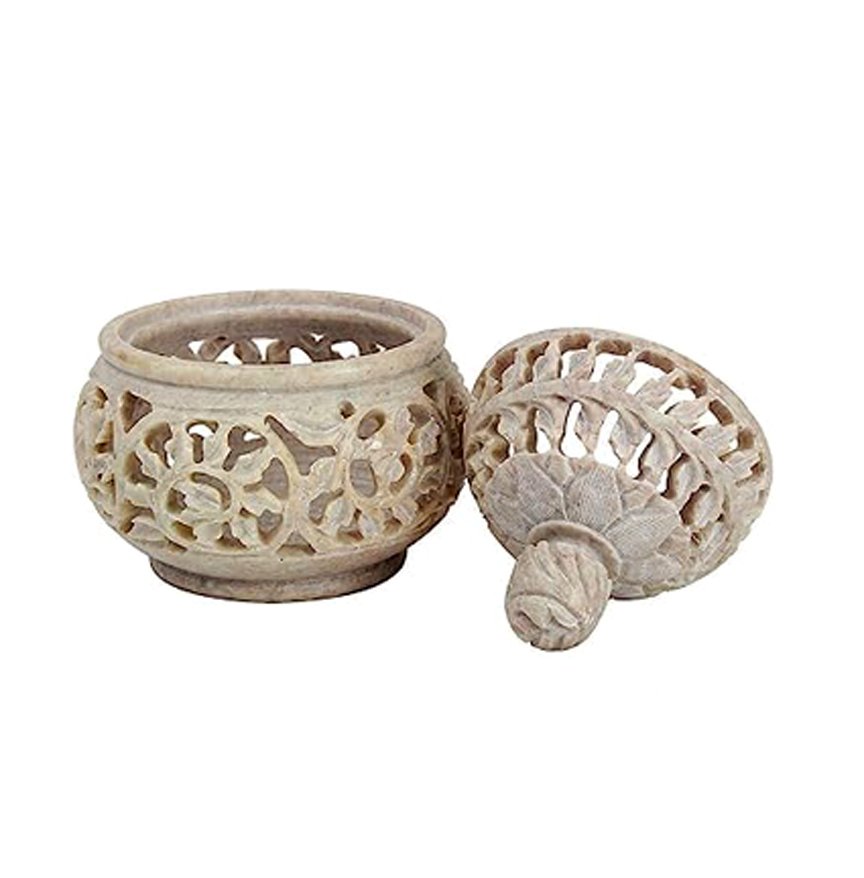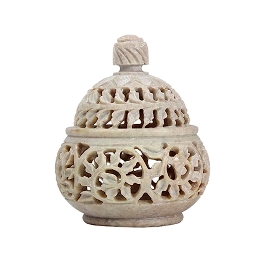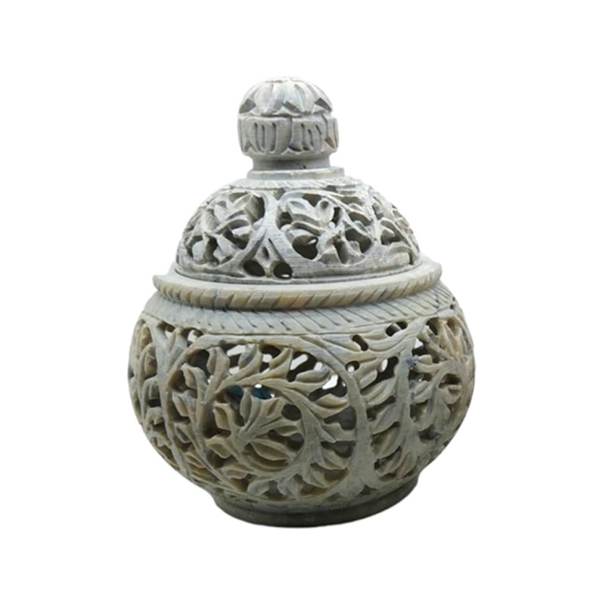 Marble Soapstone Tea Light Candle Holder Handi Shape.Perfect Handmade jaali Carved.Decorative for Home and Office Decor