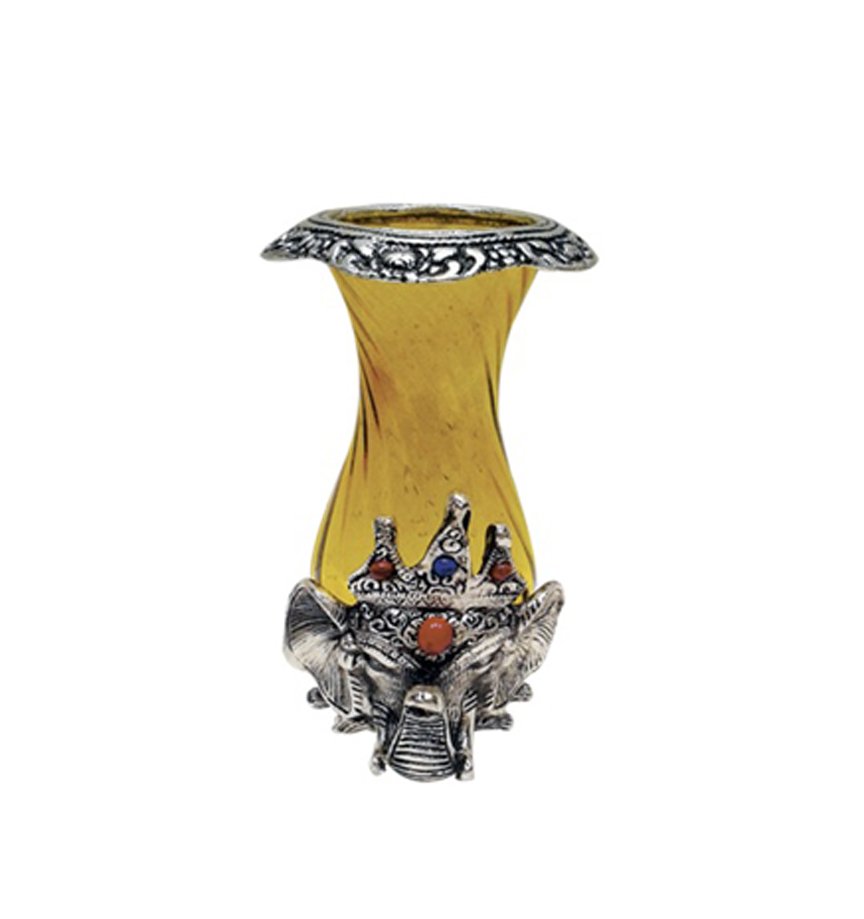 A fine piece of art with a traditional look, it features a base of elephant with glass flask on the top to hold the candle. Accent your bedside.