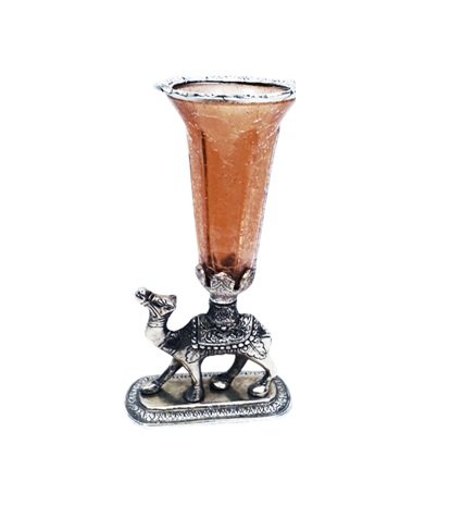 This marvelous and innovative of candle stands by handicrafts paradise is a beautiful piece of art. Camel is a symbol of long life and to bring light with it in the form of candle stand. It becomes very good gift for any person of any age group. The Camel is made of robust Silver metal whereas the candle stand is made of coloured glass. This piece of beauty and utility is the best gift to your near and dear ones on all occasion like birthday, anniversary or as house warming or marriage, return gift.