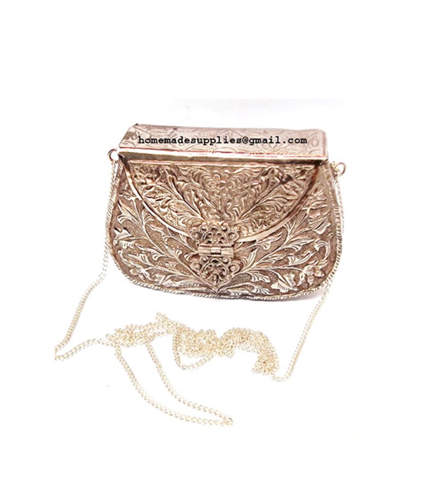 Recommended Use For Brass metal Women’s & Girls party bridal clutch detachable chain special ethnic antique handle bag gifts.