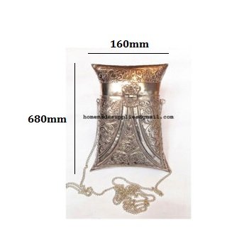 Handmade clutch with Beautiful Hanging silver balls, Bag is complete made from Brass Metal .Handmade Vintage Hand Clutch made from Horn & Brass Metal A basic Brass metal object is first designed and fine carving is done on it by hand. The process is finally completed by oxidization and Silver Polishing. Wall of the inner space is also fixed with soft velvet to protect your items. Such metal clutch bags is a very old art and but they are recently been introduced as a fashion statement.
