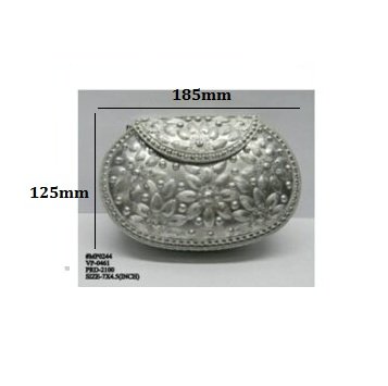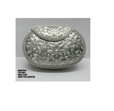 Handmade clutch with Beautiful Hanging silver balls, Bag is complete made from Brass Metal .Handmade Vintage Hand Clutch made from Brass Metal . A basic Brass metal object is first designed and fine carving is done on it by hand. The process is finally completed by oxidization and Silver Polishing. Wall of the inner space is also fixed with soft velvet to protect your items. Such metal clutch bags is a very old art and but they are recently been introduced as a fashion statement.
