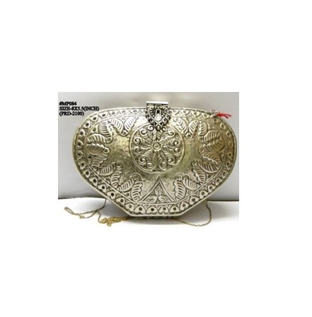 Golden color unique metal clutch purse from the Indian craftsmen. Handmade Vintage Hand Clutch made from Brass Metal . A basic Brass metal object is first designed and fine carving is done on it by hand. The process is finally completed by oxidization and polishing.Wall of the inner space is also fixed with soft velvet to protect your items.