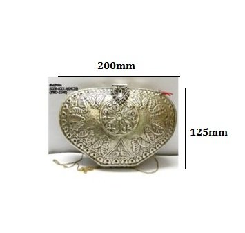 Handmade clutch with Beautiful Hanging silver balls, Bag is complete made from Brass Metal .Handmade Vintage Hand Clutch made from Brass Metal . A basic Brass metal object is first designed and fine carving is done on it by hand. The process is finally completed by oxidization and Silver Polishing. Wall of the inner space is also fixed with soft velvet to protect your items. Such metal clutch bags is a very old art and but they are recently been introduced as a fashion statement.