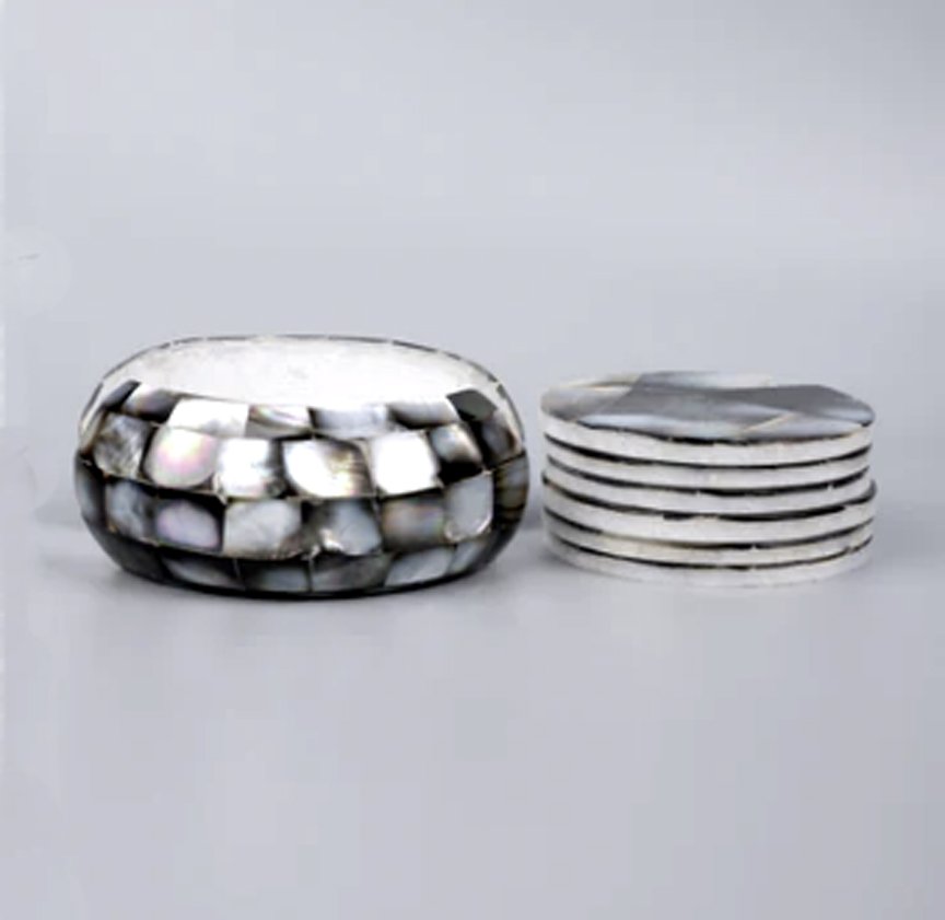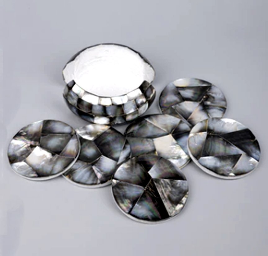 Finish -Metal Natural Marble Soapstone Sangemarmar Coasters Inlay work with Black & Gray Ston