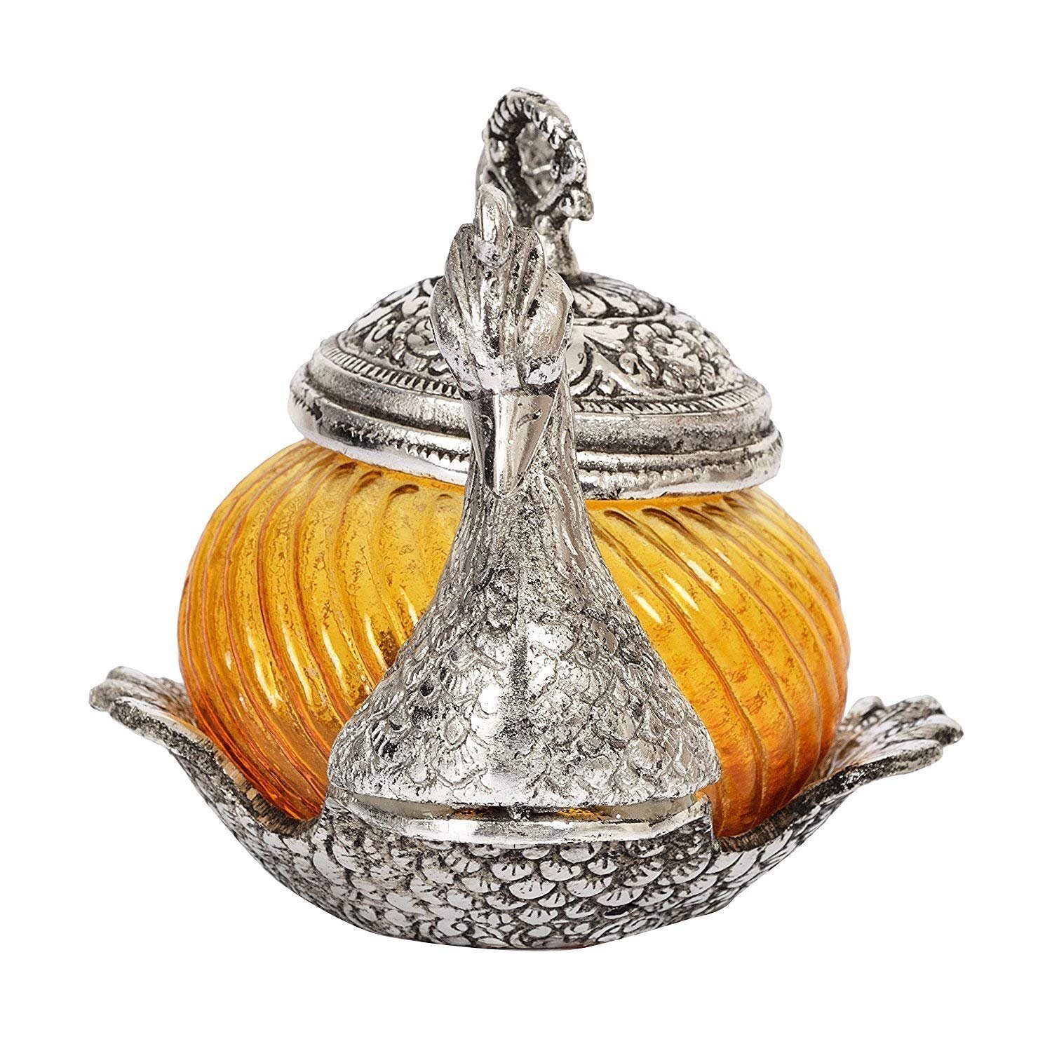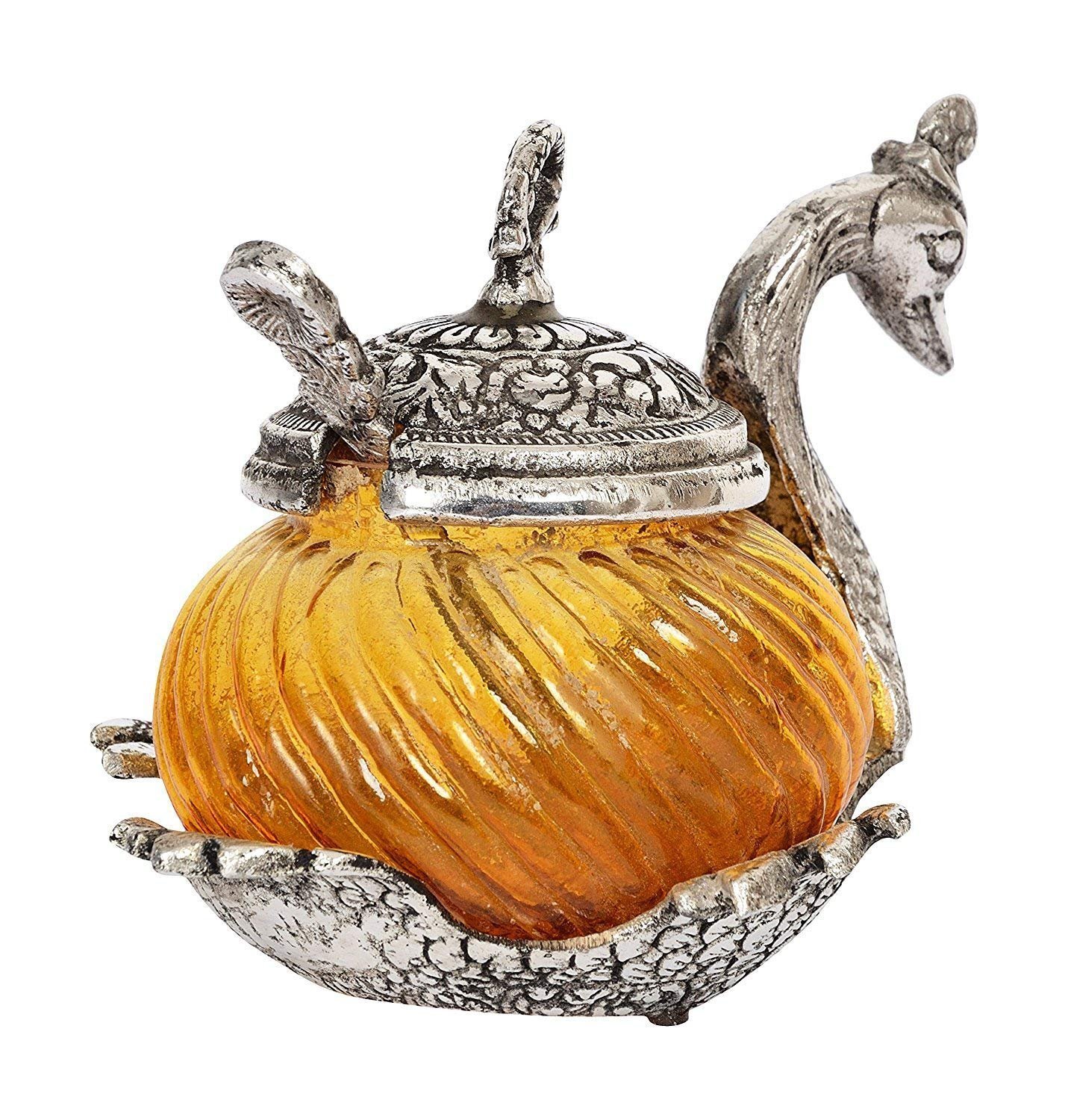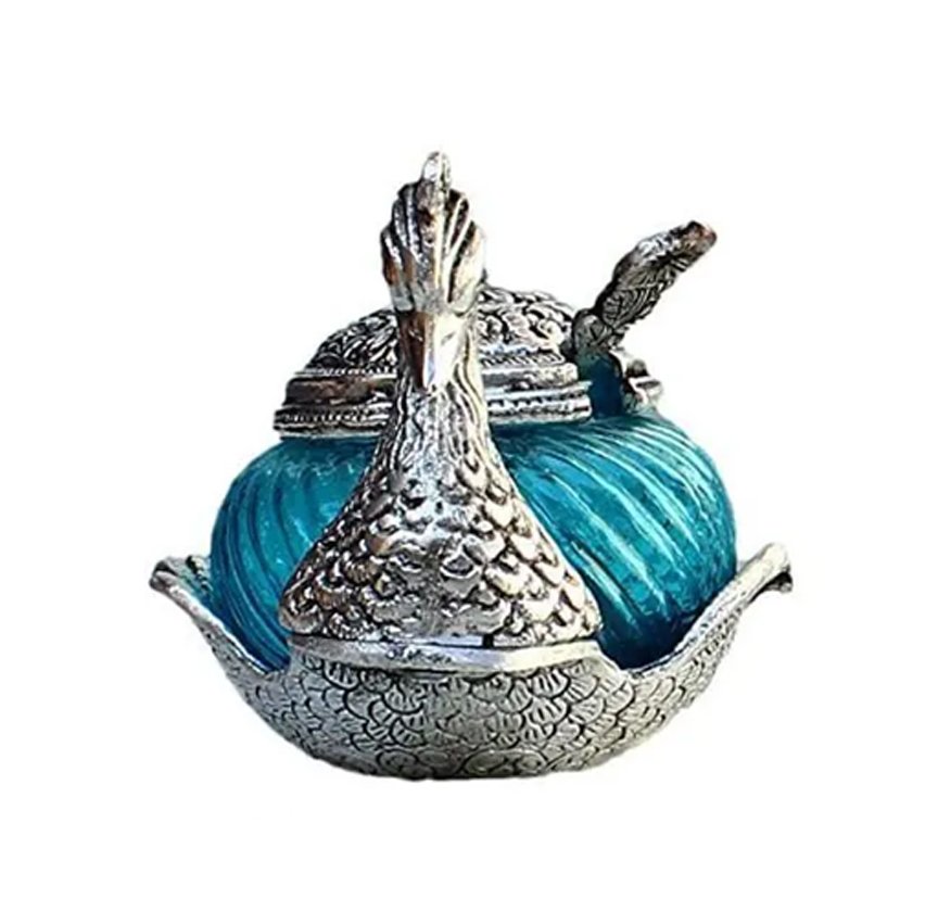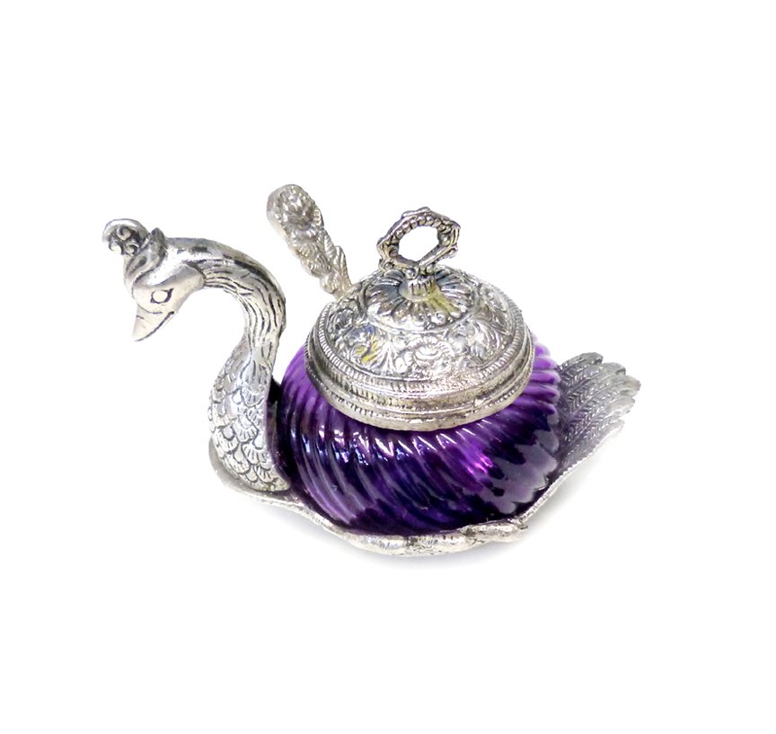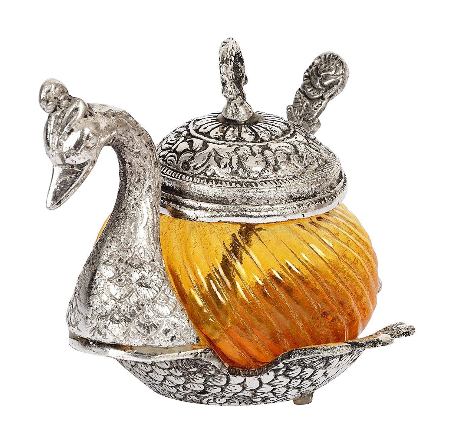 Silver Metal Duck Shape Single Bowl With Tray Set, Glass Bowl kitchen Stroge, Multi Purpose, Sugar Bowl,Masala Bowl Traditional Handicraft Decorative Gift Item Platter Burni Showpiece, Gift item, Wedding,New Year, Christmas, Marriage & uesd in various ocassions.