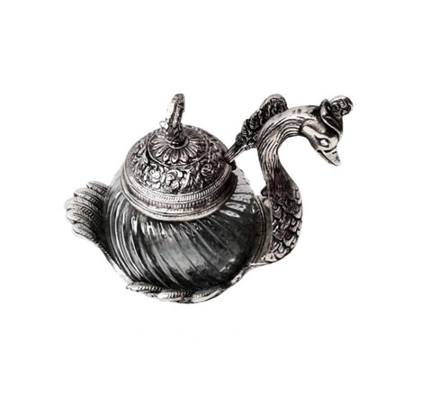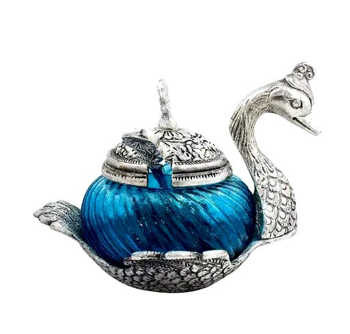 Duck Mouth Freshener Bowl, Metal Glass Duck Bowl. Designed in a shape of Swan with neck and tail carved artistically with white metal will enhance the beauty of your home and dining décor. These Duck Mouth Freshener bowls are in swan shape made with a combination of glass and metal. Our range is a perfect example of sophistication and excellent craftsmanship.