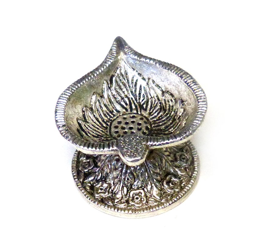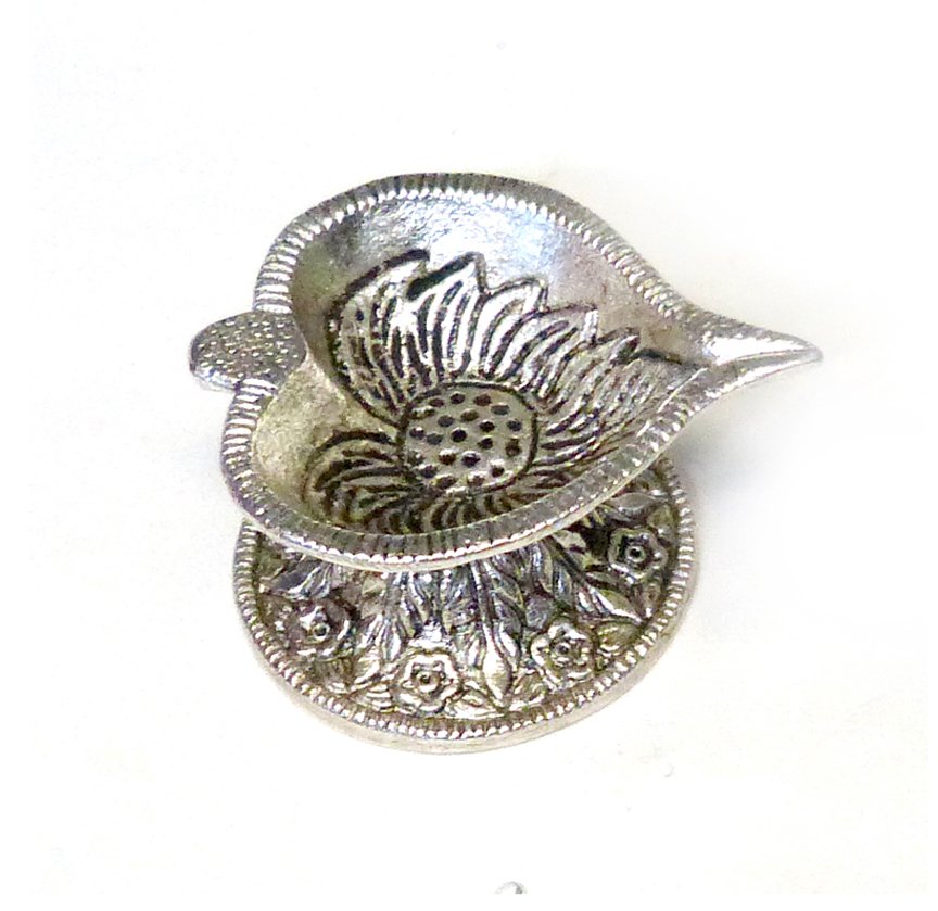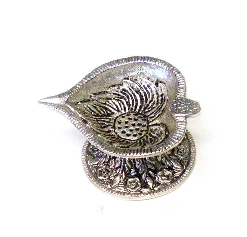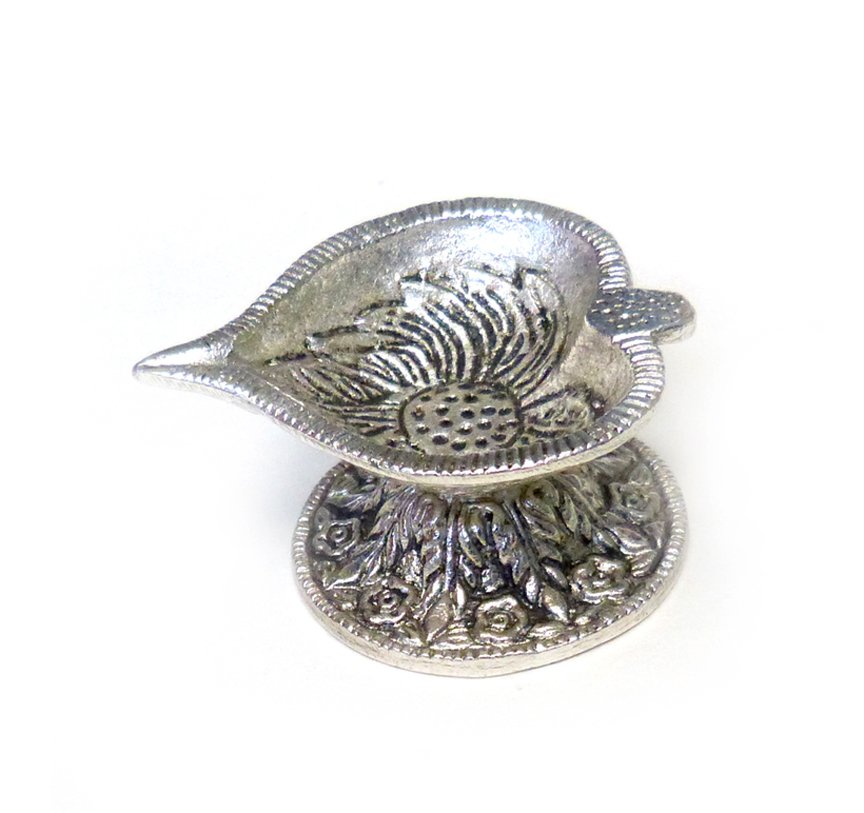 This is a Silver Diya, also known as an oil lamp. It is commonly used in Hindu, Sikh, Buddhist, and Jain prayers, as well as religious rituals and festivals. These lamps are traditionally made from clay or mud with a cotton wick dipped in oil or ghee. However, this particular diya appears to be made of metal with a decorative floral design, and it is silver in color. The diya is used to enlighten the house and is considered synonymous with Goddess Laxmi. It is often used for decoration and to create a spiritual environment.