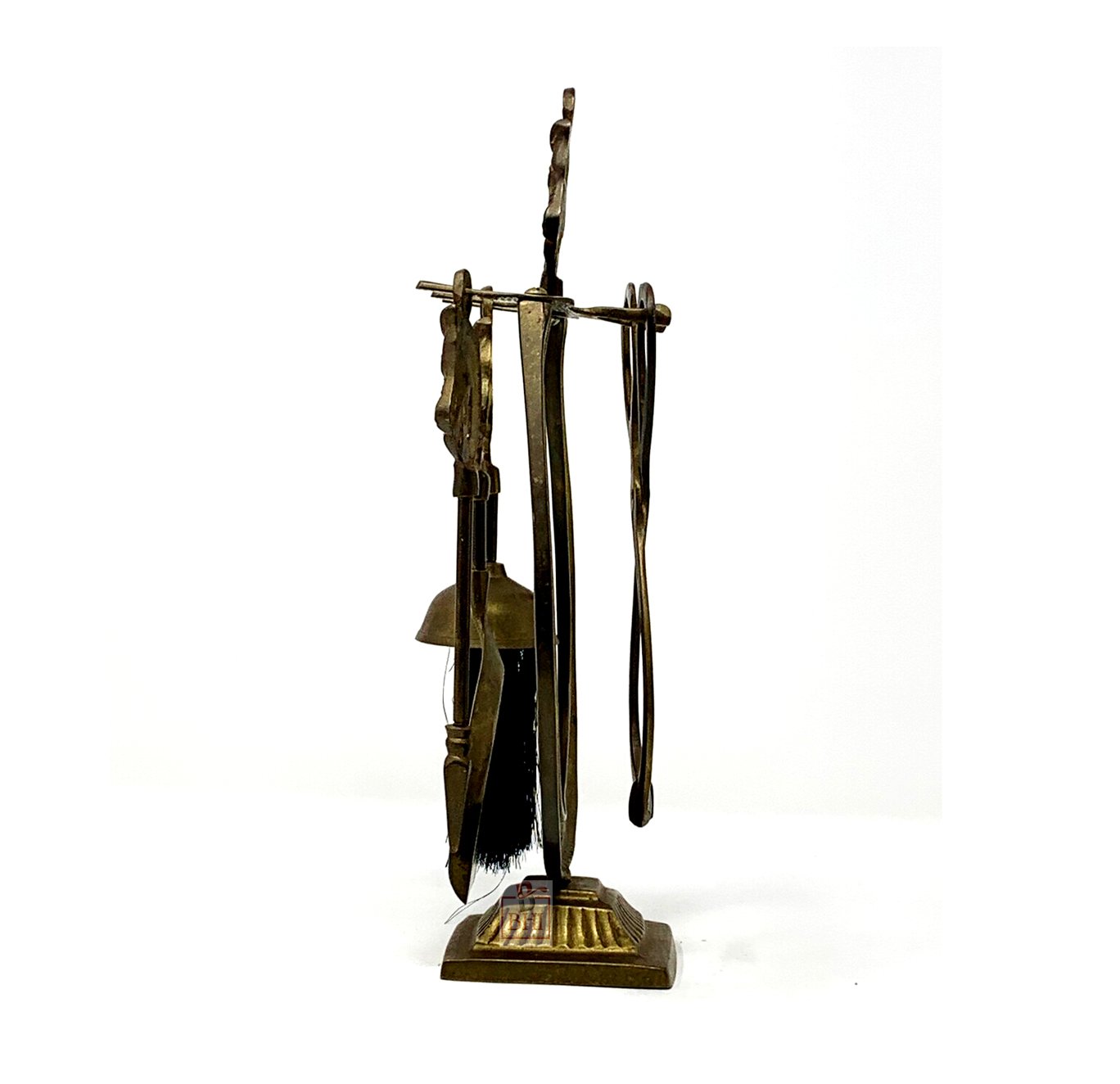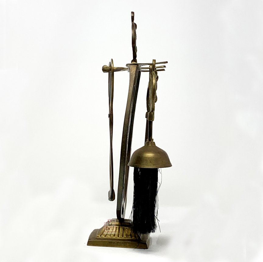 This set comes with the stand, tongs, brush, shovel and poker. All have the horse head finials.
