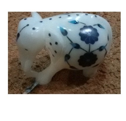 White Marble Stone Sangemarmar Inlay Work with Colored Stone Elephant for Showpiece Your House Offices,