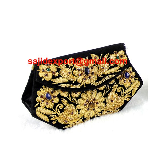 Fancy designer Clutch purse, bag with zari work, Zardozi work,