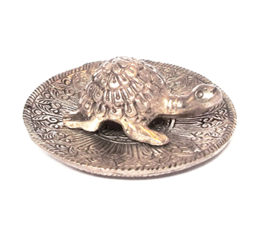Turtle with plat Decorative Showpiece – Silver Antique Protect from Negative Energy