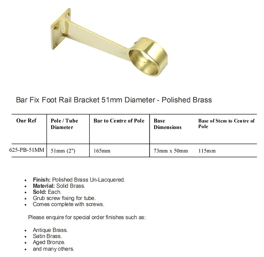 Bar Fix Foot Rail Bracket – Polished Brass 51mm #9249