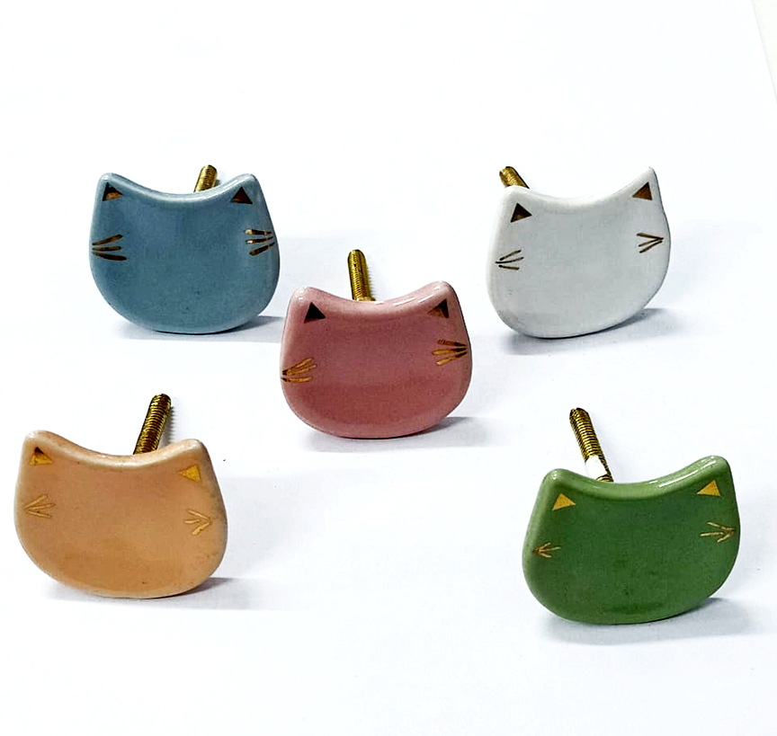 Ceramic Cabinet knob Cat 40mm #8802 (Set of 6 Pcs)