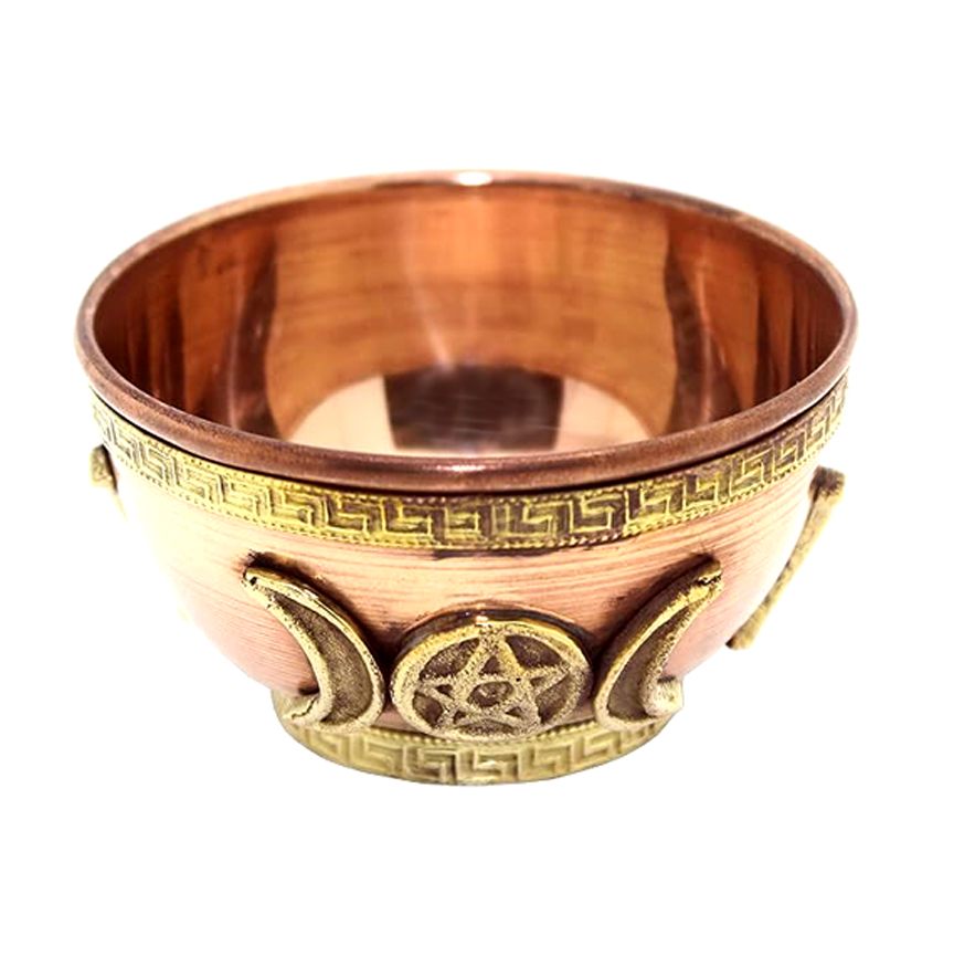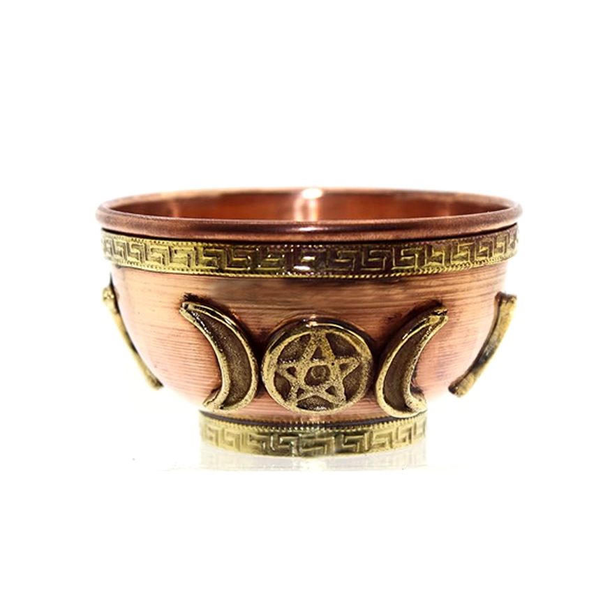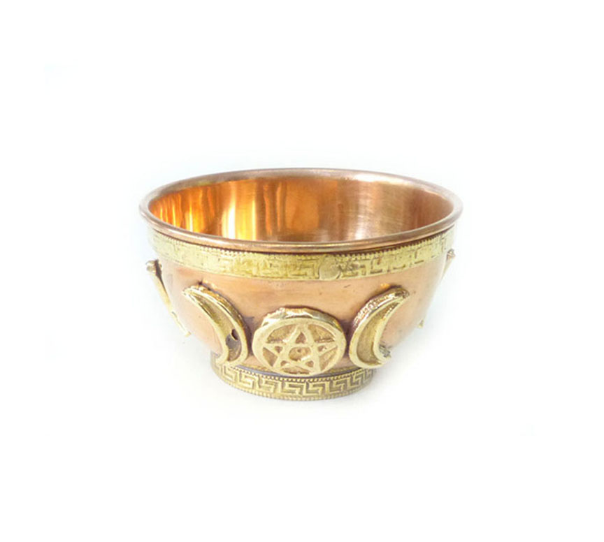Triple Moon Pentacle Copper Offering Bowl