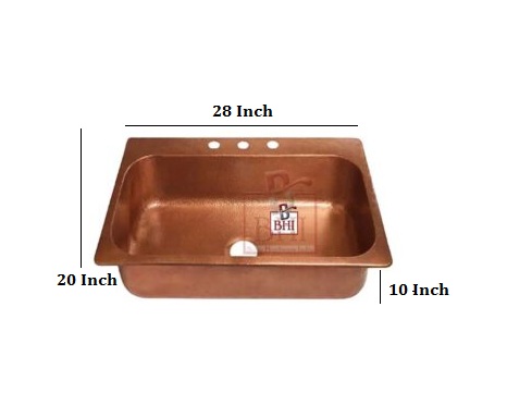 Copper Kitchen Sink 28x20x10 Inch #3472