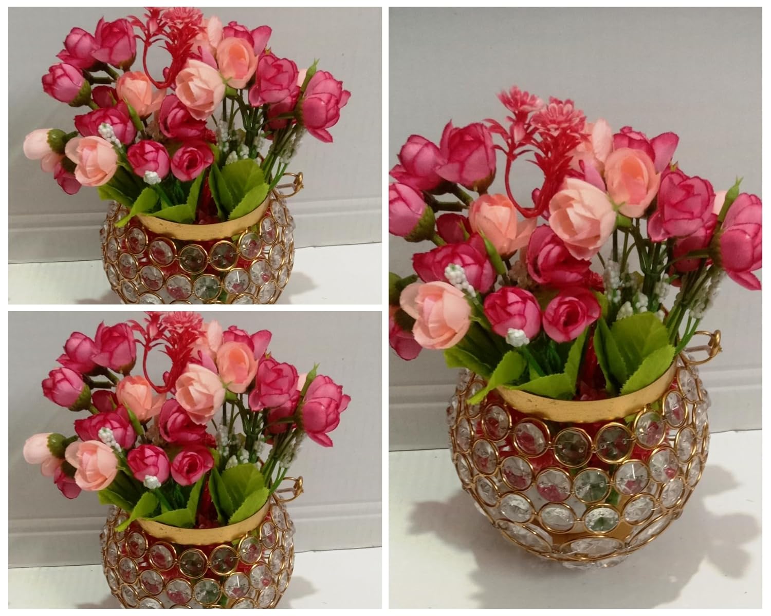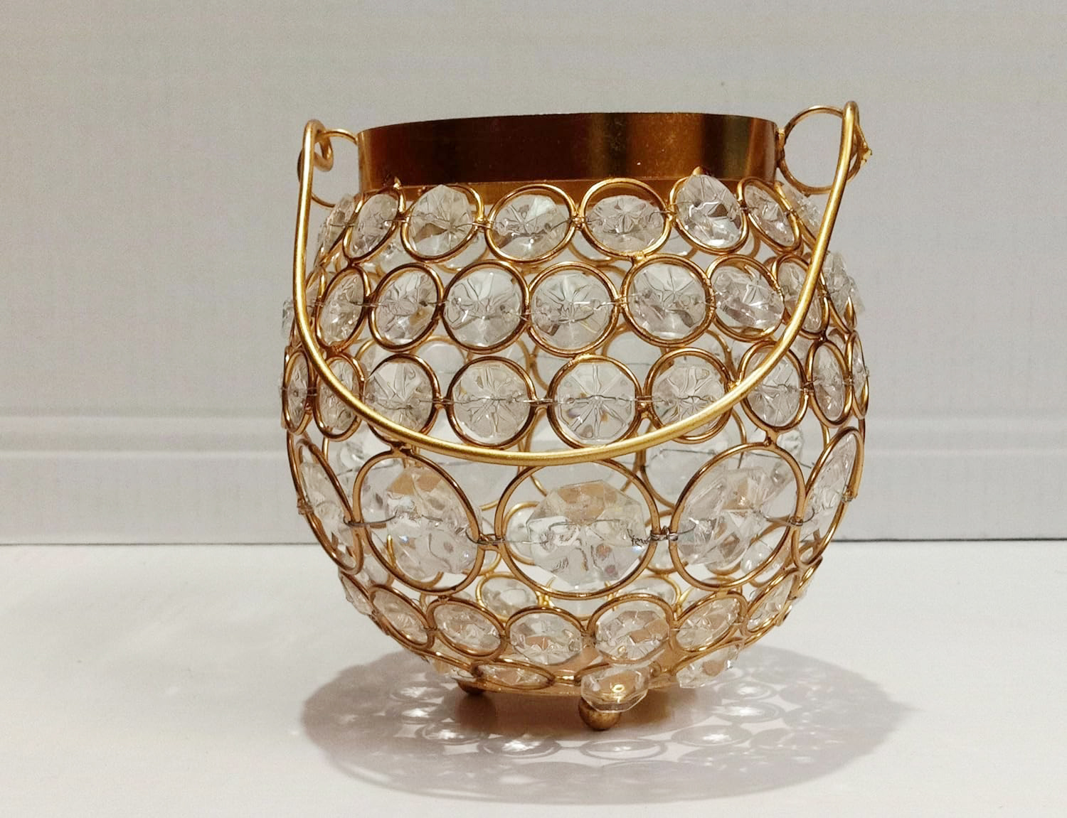 Crystal Flower Basket for Home and Office Decoration, Crystal Flower Vase, Wedding Decoration, Home Decor, Party Supplies, Diwali Decoration Flowers Not Included 130mm