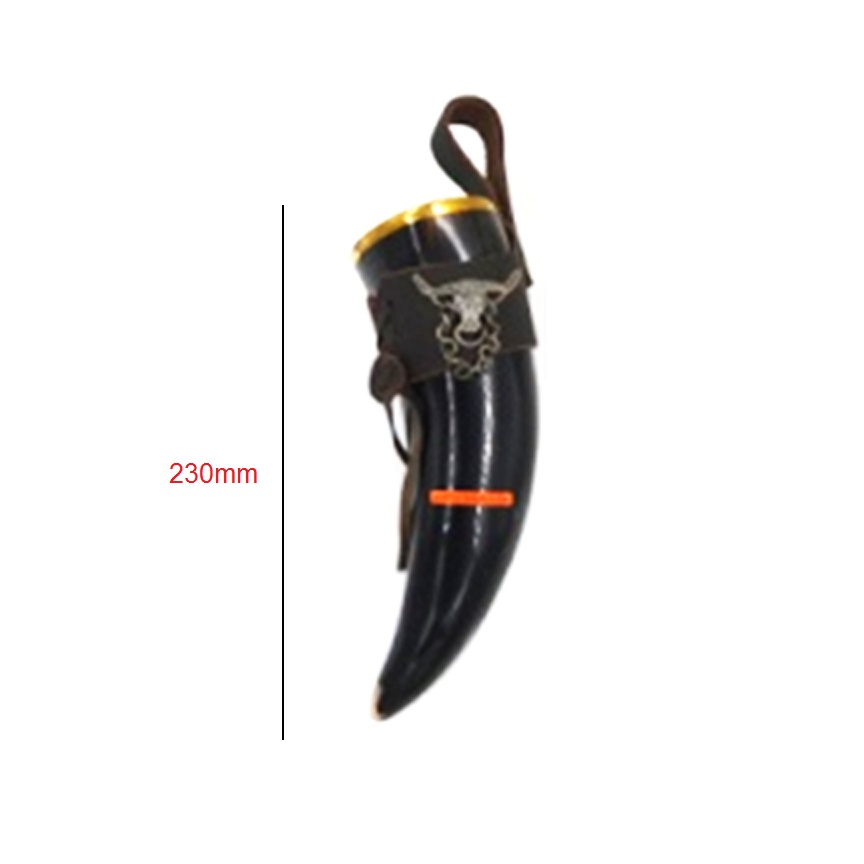 Horn Drinking Mug For Vine / Bear With Decorative Leather Holder 230mm #2888